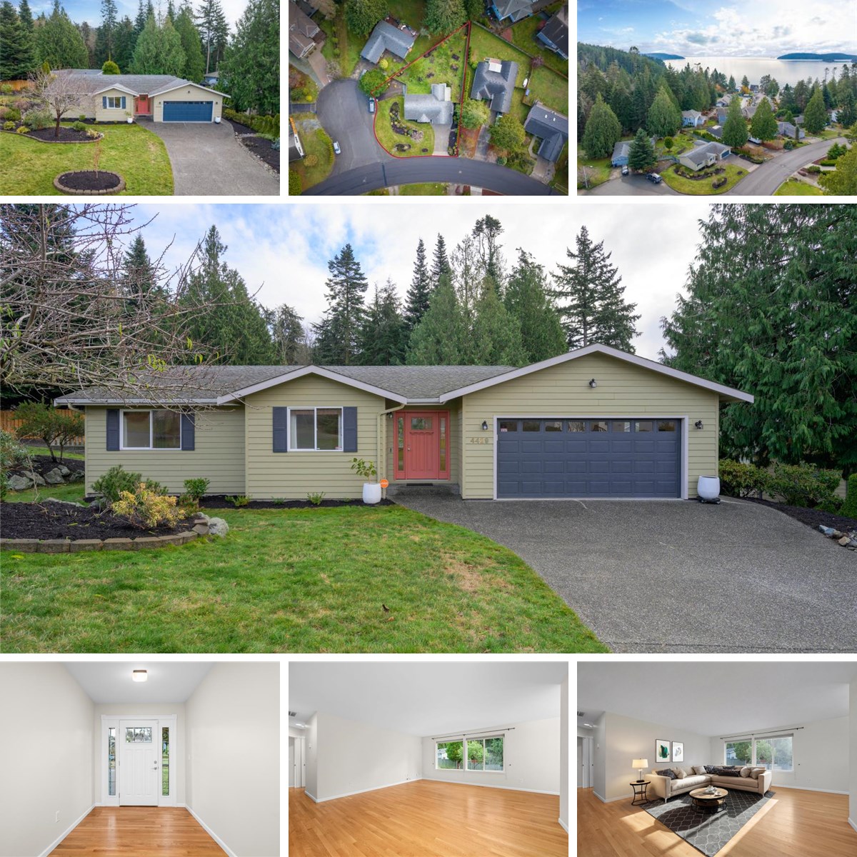 Set on an expansive lot with partial water views, this beautiful single-level home offers a timeless layout enhanced by oak hardwood floors throughout. Sunlight fills the south-facing living room and kitchen, where views extend over the fully fenced backyard, complete with planters and irrigation. The open design creates an inviting sense of space, complemented by a generous mudroom with laundry for everyday ease. Additional amenities include a west facing deck off the kitchen, a fully finished garage, newer furnace, water heater, interior paint and a level driveway. Located in Skyline with quick access to the airport, marina, WA Park, WA ferries, a sandy community beach, tennis courts, pickleball courts, and a waterfront cabana.